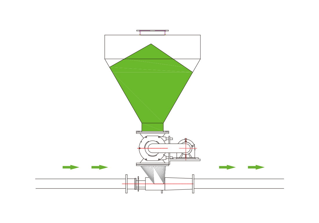 該輸送方式進料口壓力可調節,結構簡單,維修方便;易損件少,更換方便;一次性投資省;無機械傳動件,可靠性高,不易堵管。